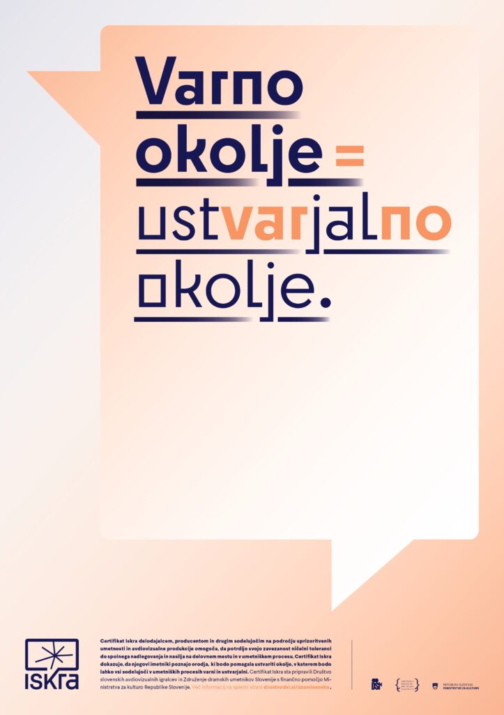 Iskra je certifikat za varno, spoštljivo in odgovorno delovno okolje v avdiovizualni produkciji in uprizoritvenih umetnostih.
