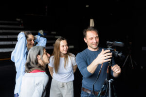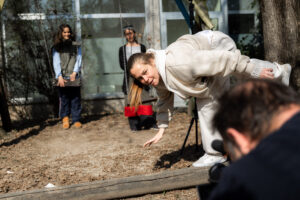 Skozi razvoj kratkih koreografskih sekvenc so udeleženci razvijali lastne ideje za video dela, pri čemer smo raziskovali razmerje med gibanjem, prostorom kadra in pogledom. Proces je potekal kolektivno, z izmenjavo vlog in stalnim dialogom, kar je omogočilo preplet individualnega izraza in skupnega ustvarjanja.